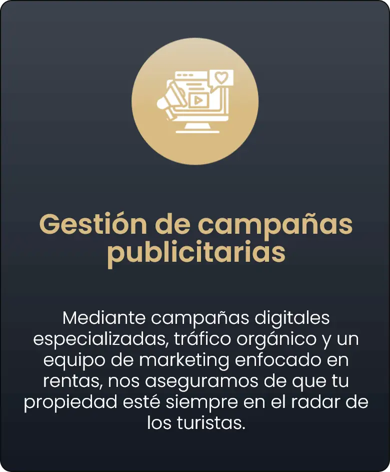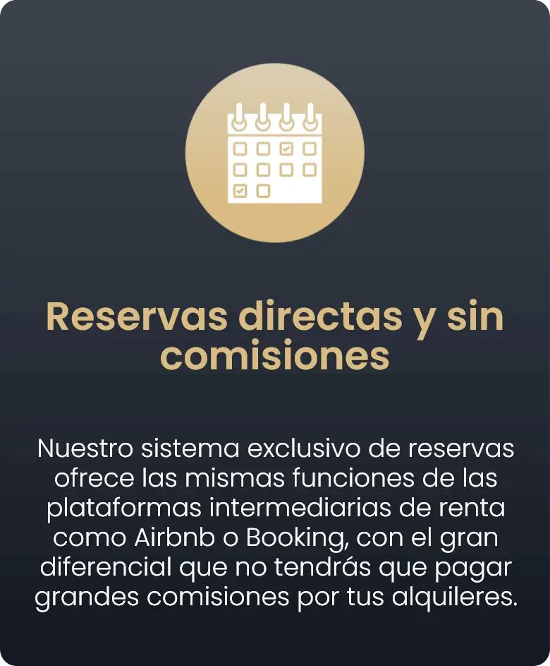 Disfruta de ingresos pasivos sin preocupaciones con nuestro servicio de administración integral. Desde el mantenimiento y la limpieza hasta la atención al huésped, nuestro equipo se encarga de cada detalle para asegurar que tu inversión esté siempre en óptimas condiciones.